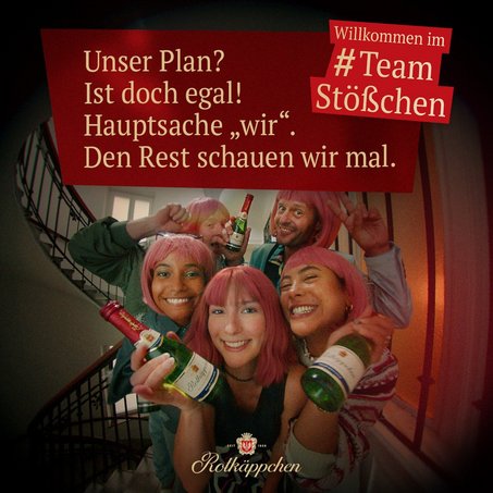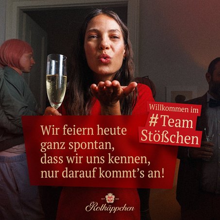 Mit der #TeamStößchen-Kampagne für Rotkäppchen habe ich gemeinsam mit der Agentur la red mit einer vielseitigen digitalen Kampagne gemeinsame Momente gefeiert und gezeigt, dass diese nicht nur bei festlichen Anlässen, sondern auch im alltäglichen Leben stattfinden. Teil der Kampagne waren aufmerksamkeitsstarke Anzeigen auf Plattformen wie Facebook, Instagram, Pinterest und YouTube Shorts sowie diverse interaktive Elemente. Fans konnten prickelnde Grüße über eine Sharing-Funktion an Freunde oder die Community auf WhatsApp, Facebook und Instagram senden. Ebenso wurden sie dazu ermutigt, ihren „TeamStößchen“-Charakter auszuwählen und digital zu teilen, beides auf der speziellen Landingpage. Eine Influencer-Kampagne mit bekannten Poetry Slammern hat das Digitalkonzept abgerundet und alles zusammengeführt.